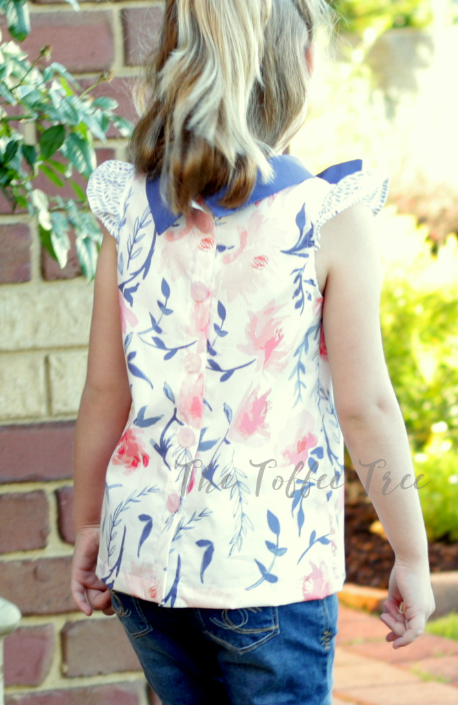 Ooo-la-la! French seams on a beautiful blouse mean that this Penny blouse, by Jilly Atlanta is as gorgeous on the inside as the outside. No overlocker required and the finish is perfection. This blouse has some lovely options - little flutter sleeves, a tie collar with either a bow or knot finish (I opted for the knot) or a v-back with no collar. The back is finished with buttons. I made the size 6 in a size 5 width for Anya and it fits her beautifully (she normally wears a 5-6). I chose not to add the little snaps to the back collar as I like how the collar sits with it's little wings out!
